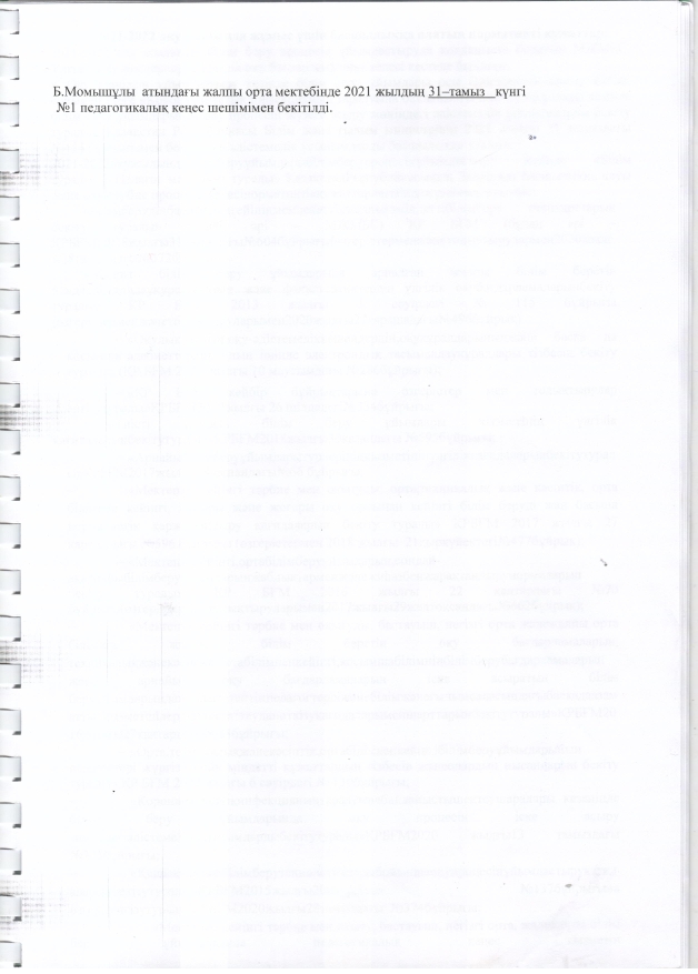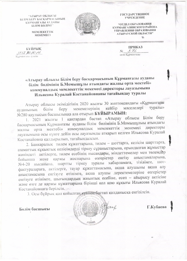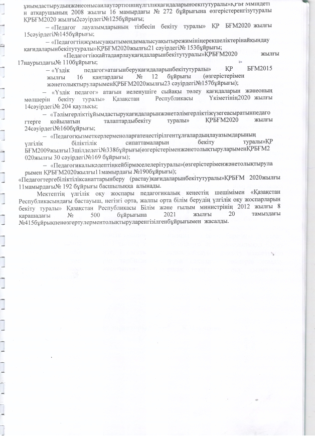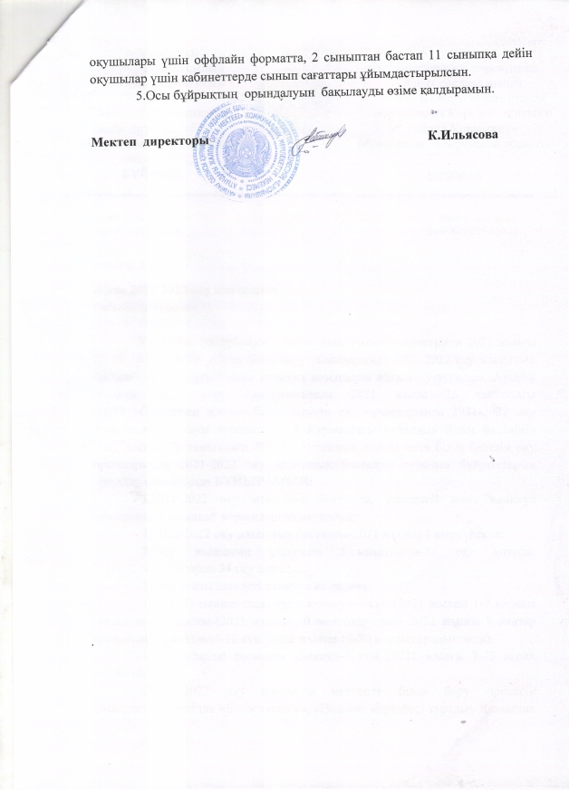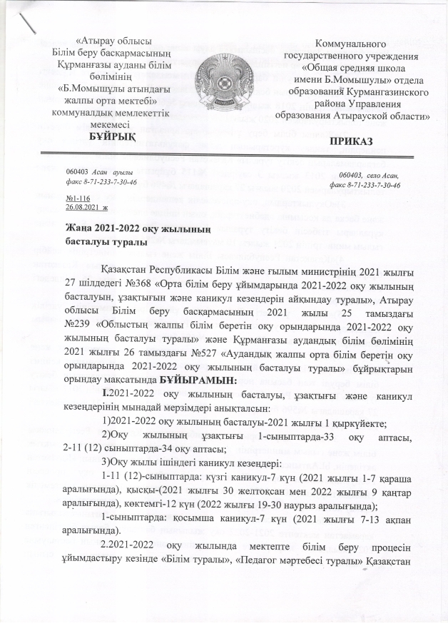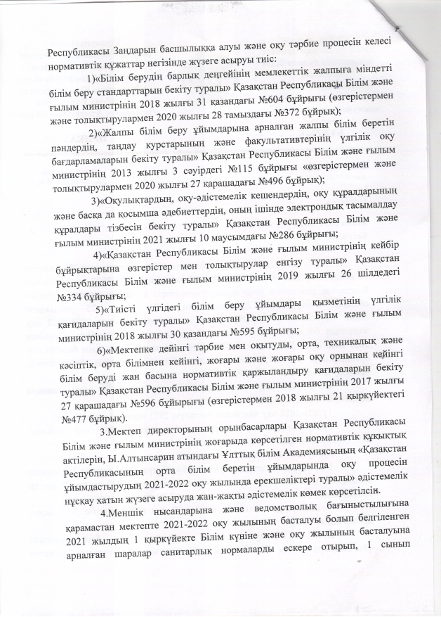 Жаңа 2021-2022 оқу жылының басталуы туралы бұйрық