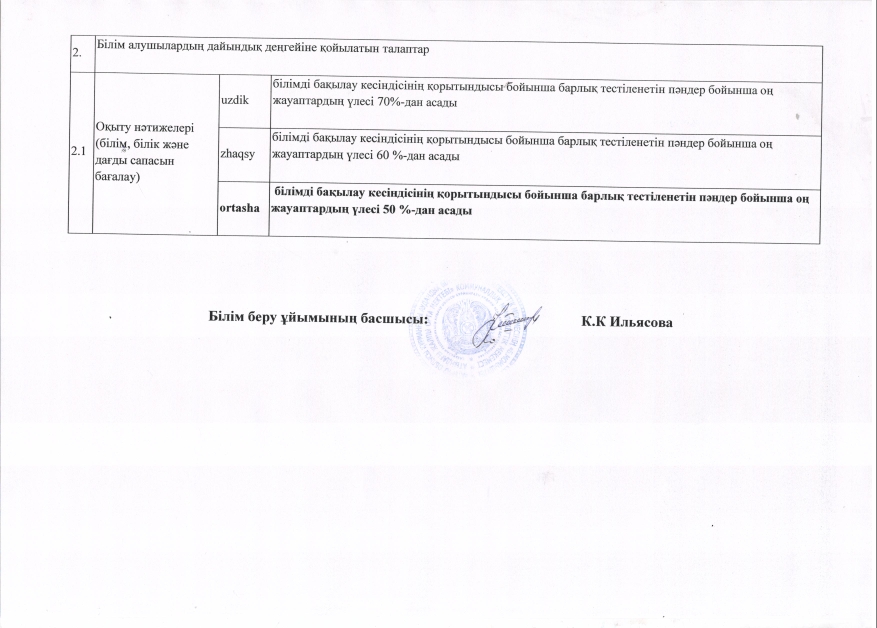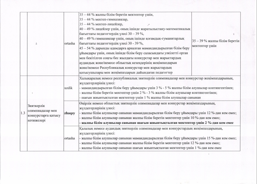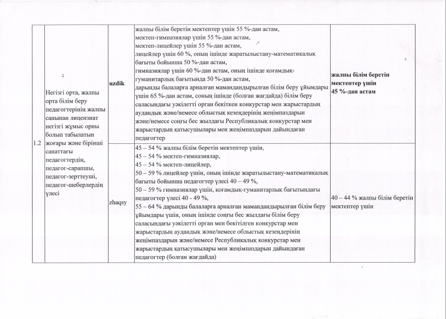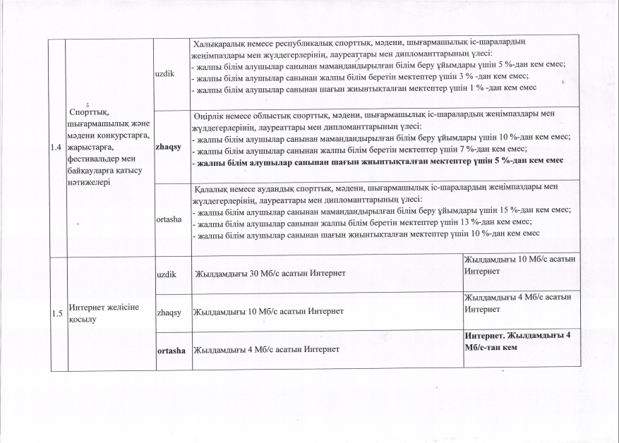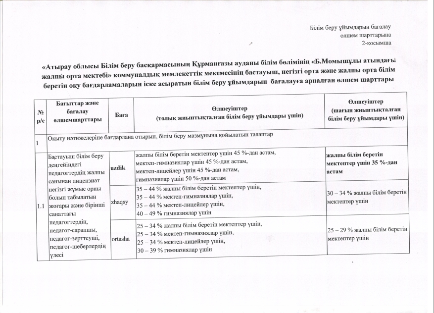 Білім беру ұйымдарын бағалау өлшем шарттарына 2-қосымша