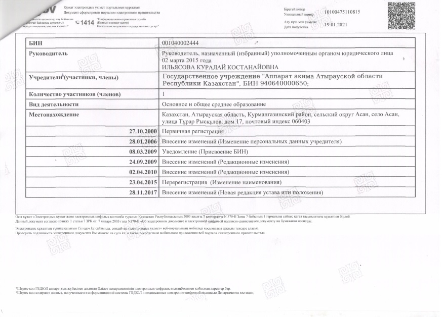 Заңды тұлғаның барлық тіркеу әрекеттері туралы анықтама