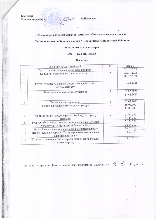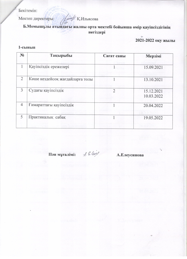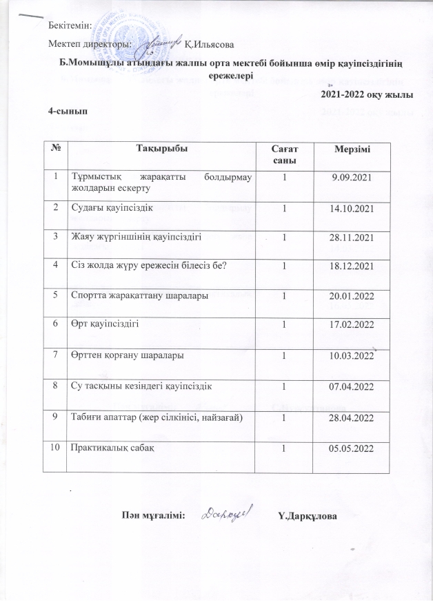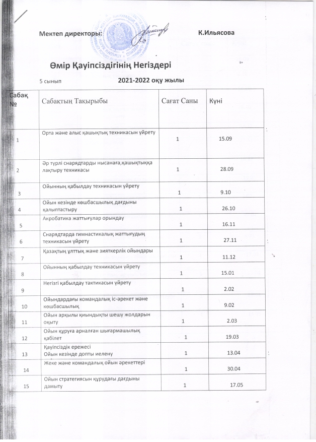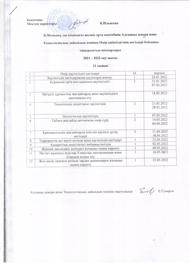 2021-2022 оқу жылына арналған 1-11 сынып өмір қауіпсіздігінің негіздері бойынша тақырыптық жоспарлар