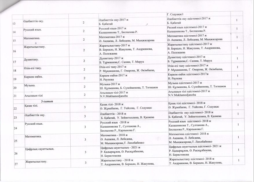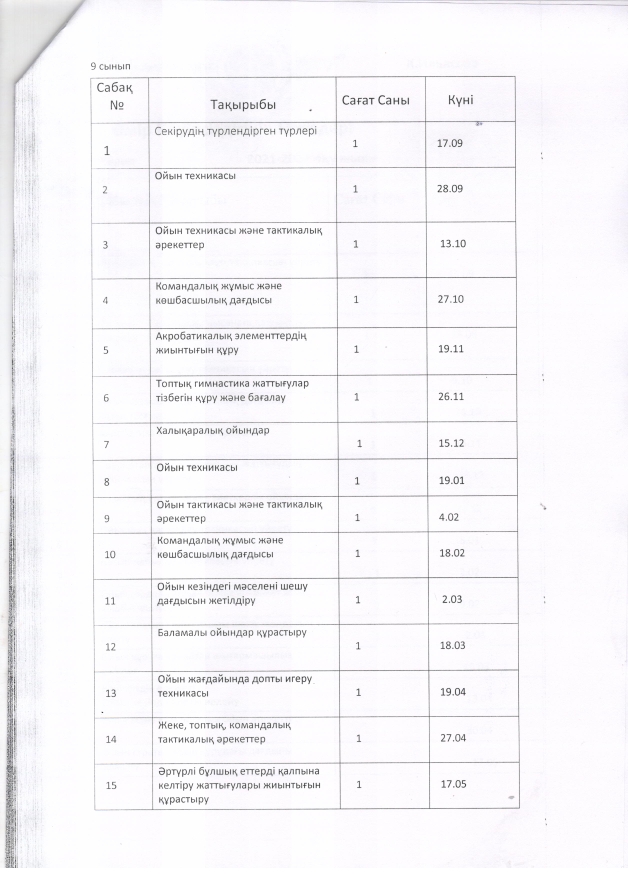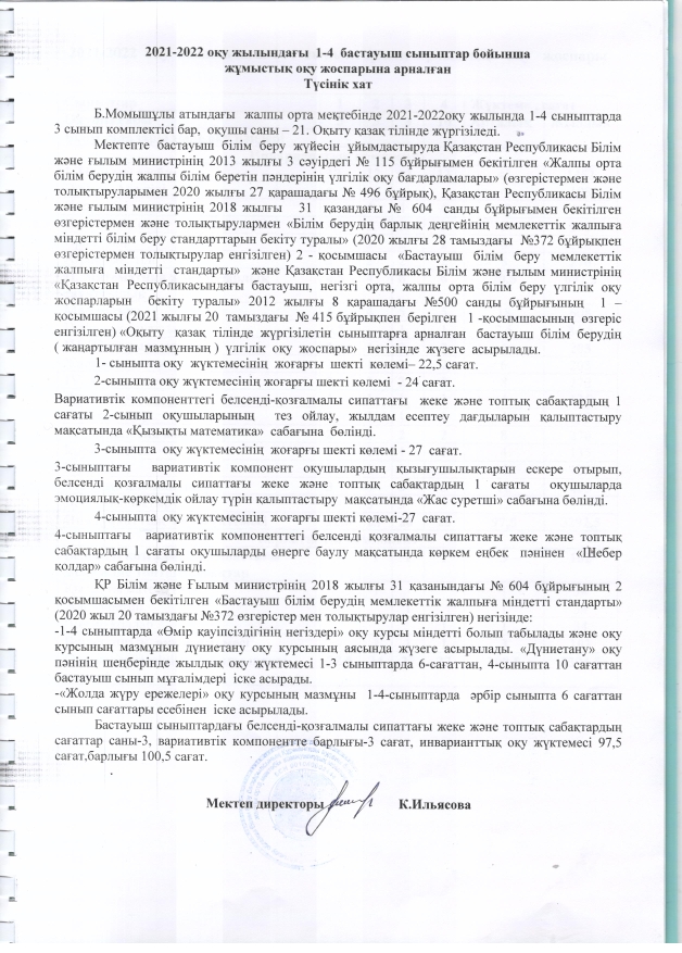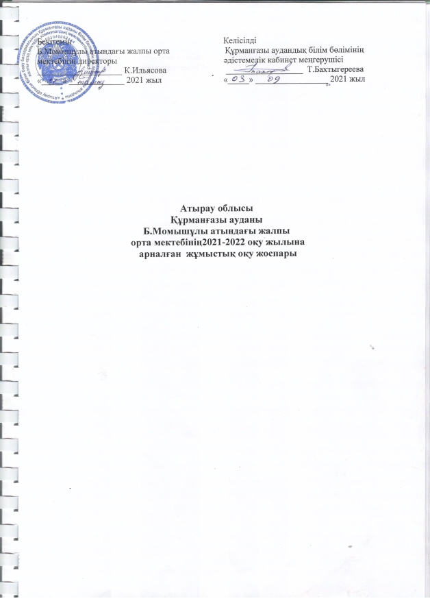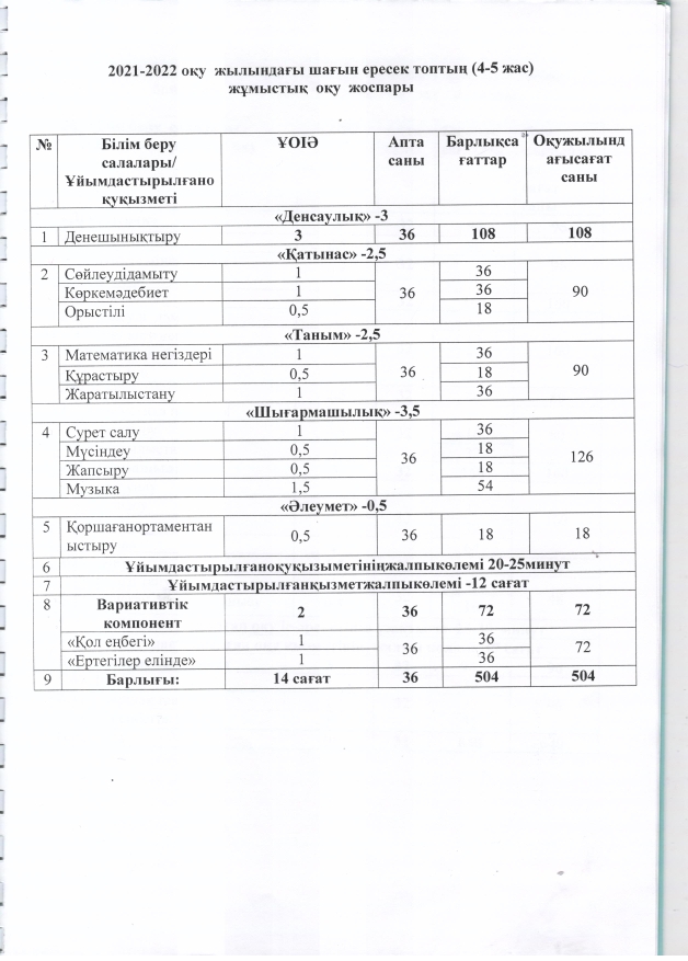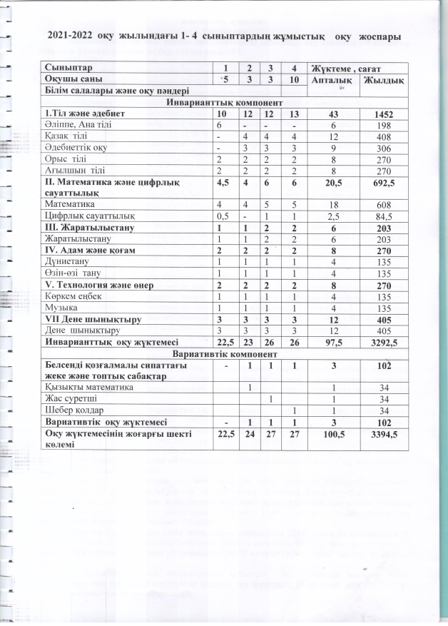 2021-2022 оқу жылына арналған жұмыстық оқу жоспары
