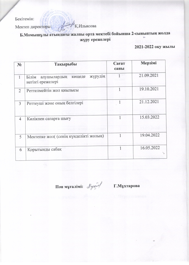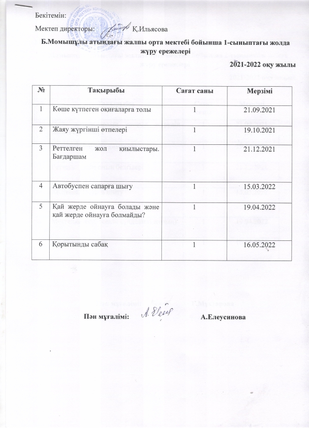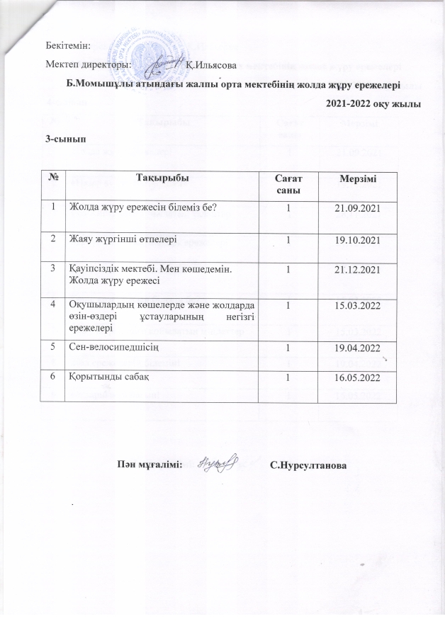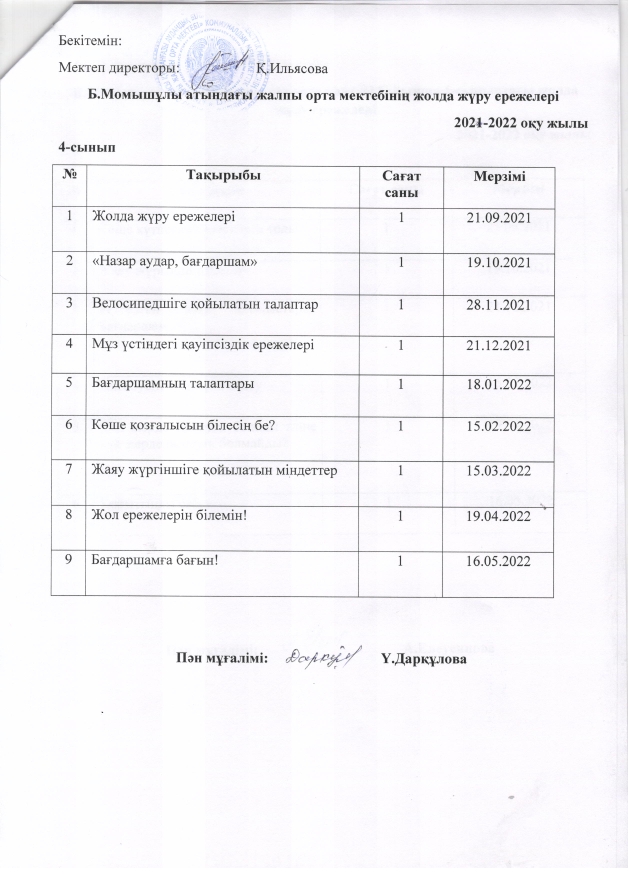 2021-2022 оқу жылының 1-4 сынып жолда жүру ережелері тақырыптық жоспарлары