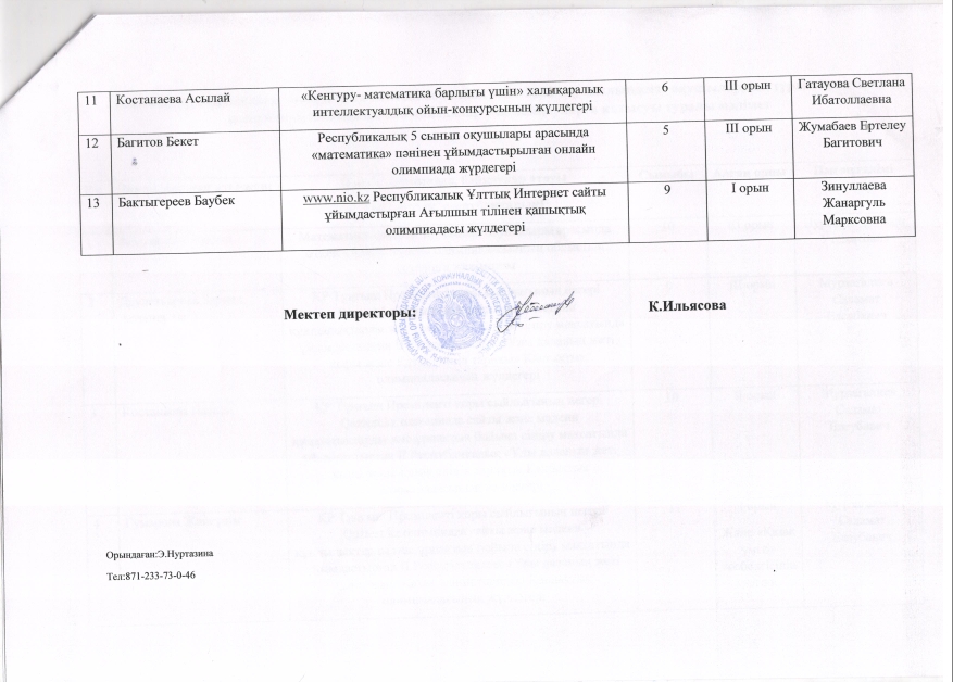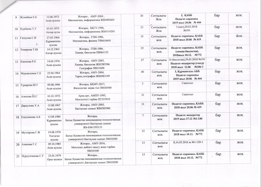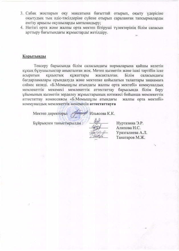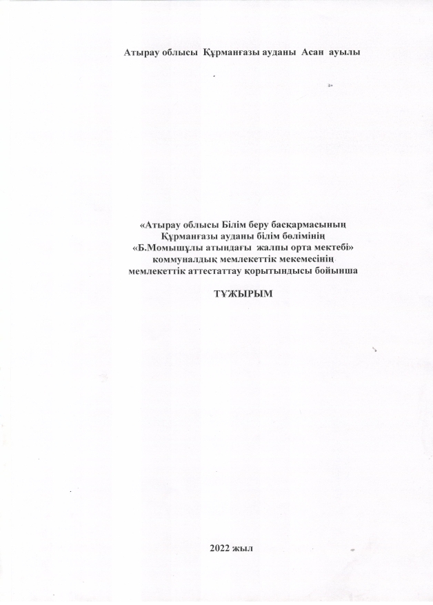 Мемлекеттік аттестаттау қорытындысы бойынша ТҰЖЫРЫМ