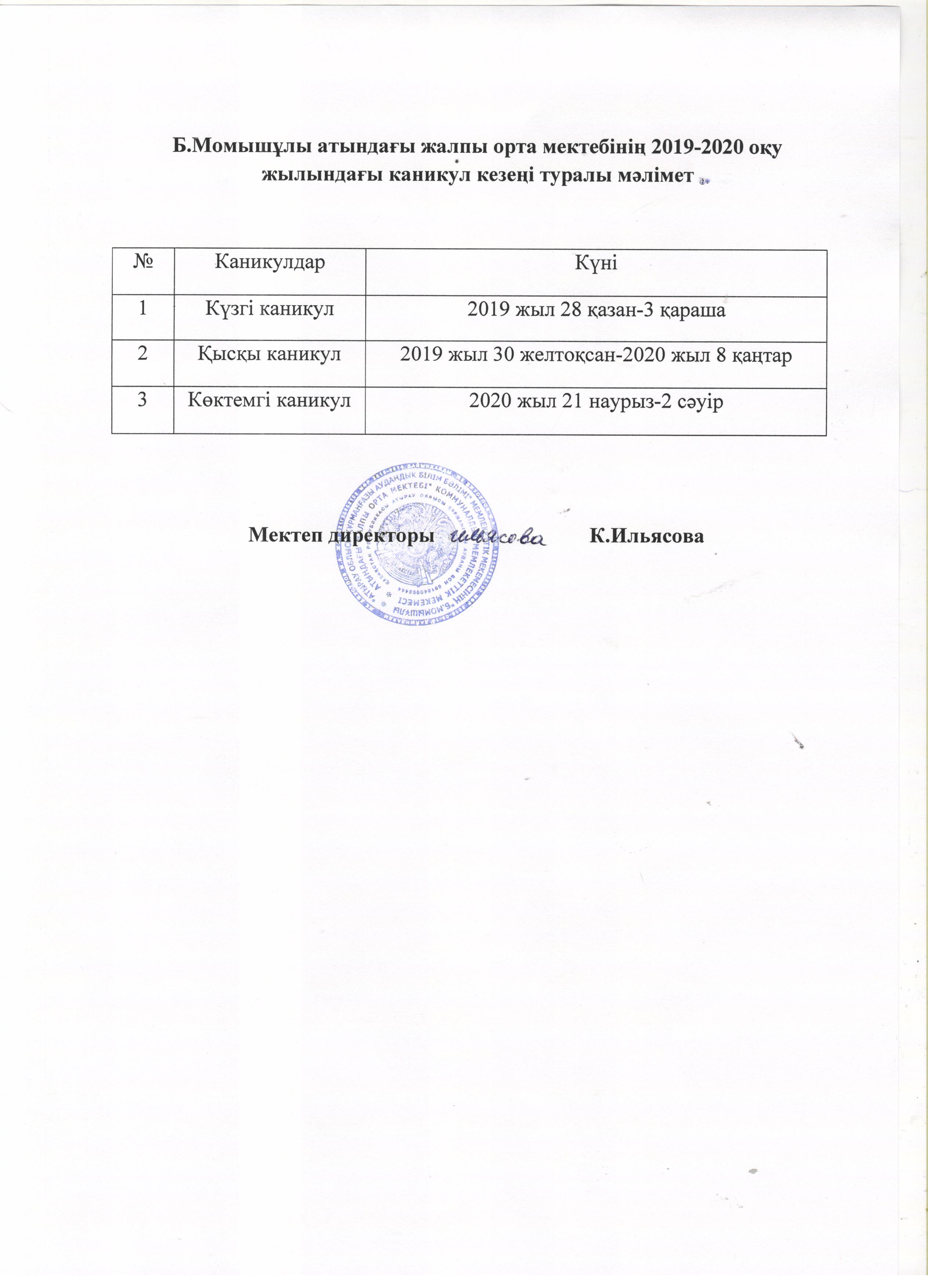 Демалыс уақыттарының кестесі