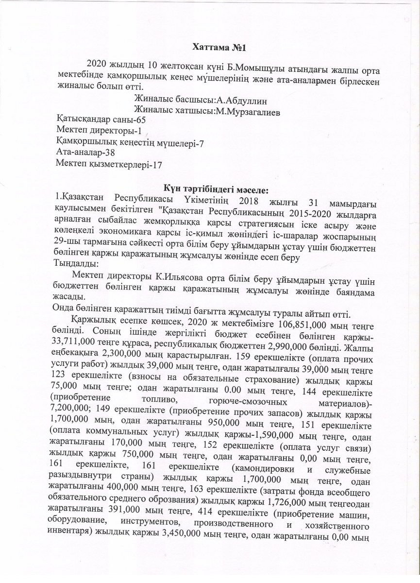 Мектептің жарғысы